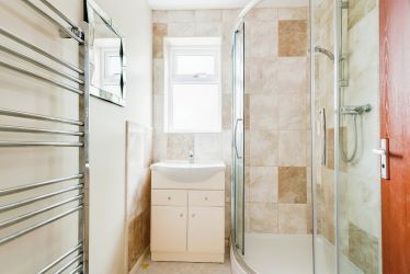 The family bathroom is well-appointed with contemporary fixtures and fittings, including, an overhead shower and WC.